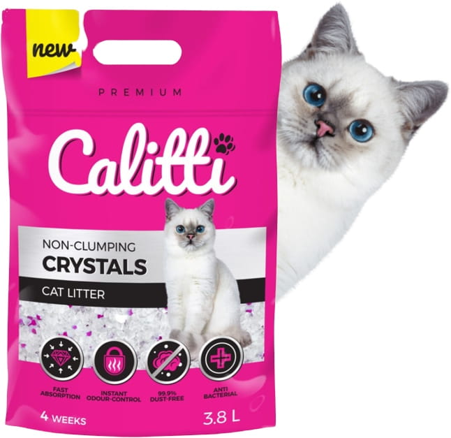 Calitti® CRYSTALS to żwirek silikonowy dla najbardziej wymagających kotów i ich właścicieli.
