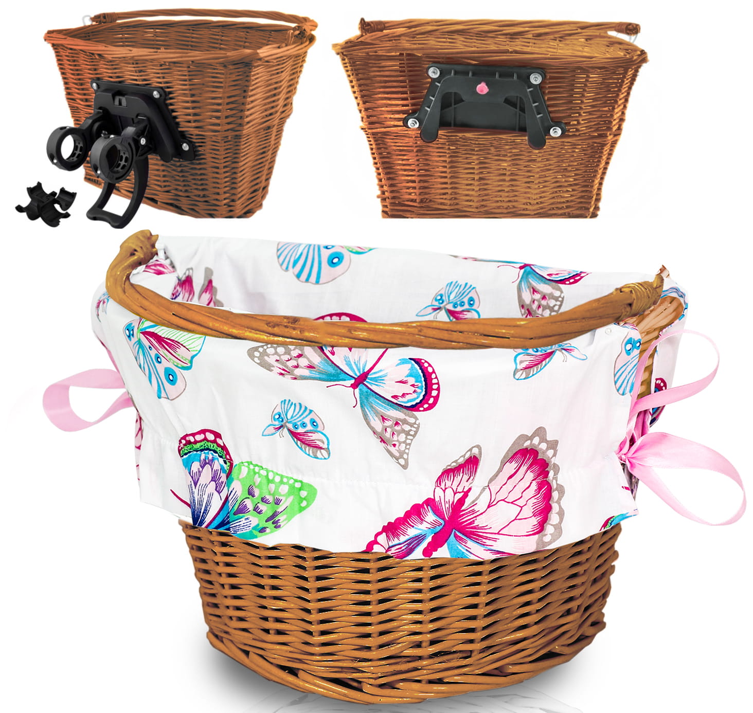 Koszyk wiklinowy na rower będzie pasował do wszystkich modeli o rozmiarach kół 20", 24", 26", 27", 28" i kierownicy o średnicy 25 mm. Sprawdzi się zatem zarówno w rowerach zwykłych, miejskich, jak i turystycznych czy do roweru MTB z amortyzatorem lub bez. Koszyk na rower z wikliny montuje się za pomocą wygodnego uchwytu typu CLICK. Taki sposób montowania pozwala na bardzo szybkie wpięcie i wypięcie koszyka na rower z wikliny – bez potrzeby stosowania żadnych dodatkowych narzędzi. W zestawie znajduje się zarówno koszyk wiklinowy na rower, jak i wszystkie potrzebne elementy montażowe.
