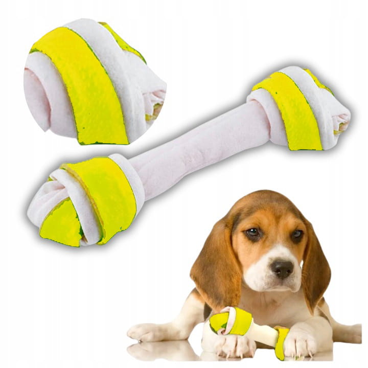 MACED KOŚĆ WIĄZANA DLA PSA NATURALNY GRYZAK BIAŁA JAGNIĘCINA SKÓRA WOŁOWA