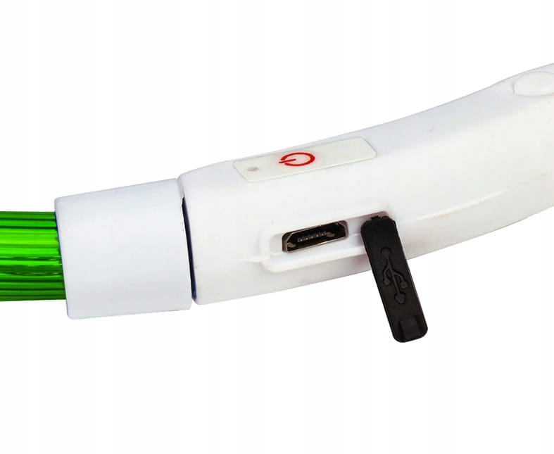 Świecąca obroża LED wykonana z gumy,  zapinana na plastikowy zatrzask. Podświetlana obroża nie drażni psa a dla właściciela jest widoczna pod każdym kątem. Świetnie nadaje się na tereny wiejskie, kempingi, wycieczki turystyczne, jogging, spacery po parkach i wszelkiego rodzaju czynności na świeżym powietrzu w nocy.