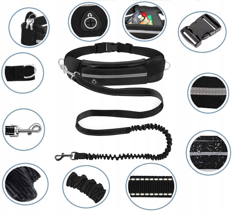 - Odpinana konstrukcja - Pas biodrowy i smycz dla psa mogą być używane osobno. Podłącz smycz do pasa podczas biegania i masz obie ręce wolne! W dowolnym momencie odłączysz od biodrówki i możesz używać jako normalnej smyczy