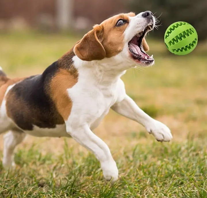 Specjalna konstrukcja piłeczki nie tylko przyczynia się do czyszczenia zębów Twojego pupila. Możesz wykorzystać ją do ćwiczenia jego spostrzegawczości. Należy tylko umieścić w jej szczelinach przysmaki i obserwować, jak zwierzak radzi sobie z ich wydostaniem.