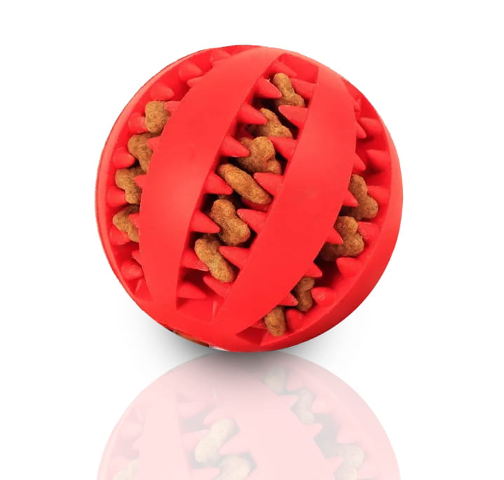 Specjalna konstrukcja piłeczki nie tylko przyczynia się do czyszczenia zębów Twojego pupila. Możesz wykorzystać ją do ćwiczenia jego spostrzegawczości. Należy tylko umieścić w jej szczelinach przysmaki i obserwować, jak zwierzak radzi sobie z ich wydostaniem.