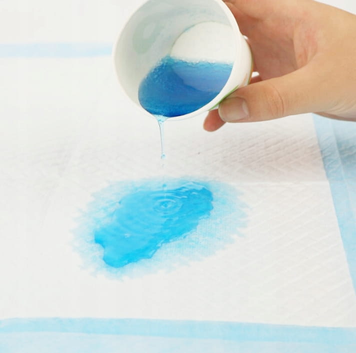 - WYSOKA CHŁONNOŚĆ – podkłady są wyjątkowo chłonne (chłonność 400 ml), dzięki czemu całość cieczy wsiąka w nie momentalnie.