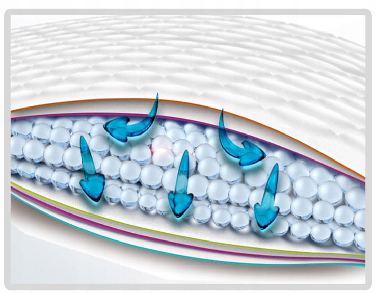 Wkładki chłoną do 4 filiżanek płynu i skutecznie blokują wilgoć w żelu, aby zapobiec wyciekom brzegi zostały dodatkowo uszczelnione