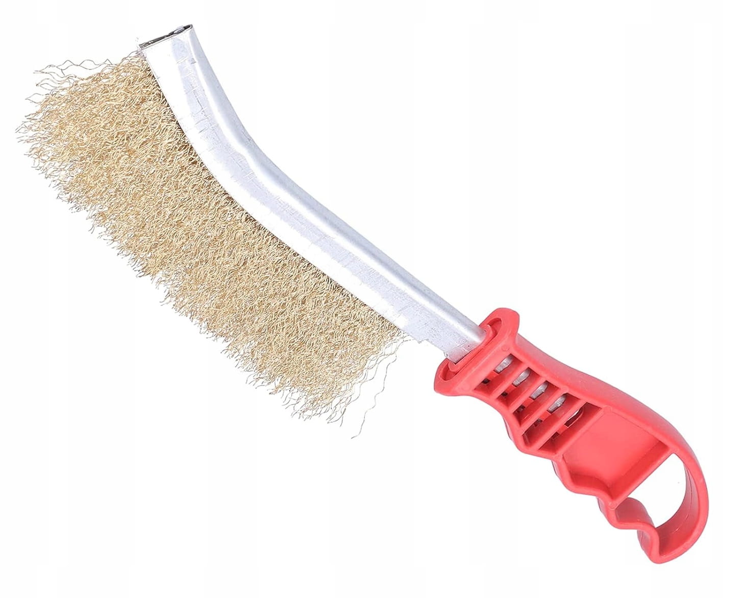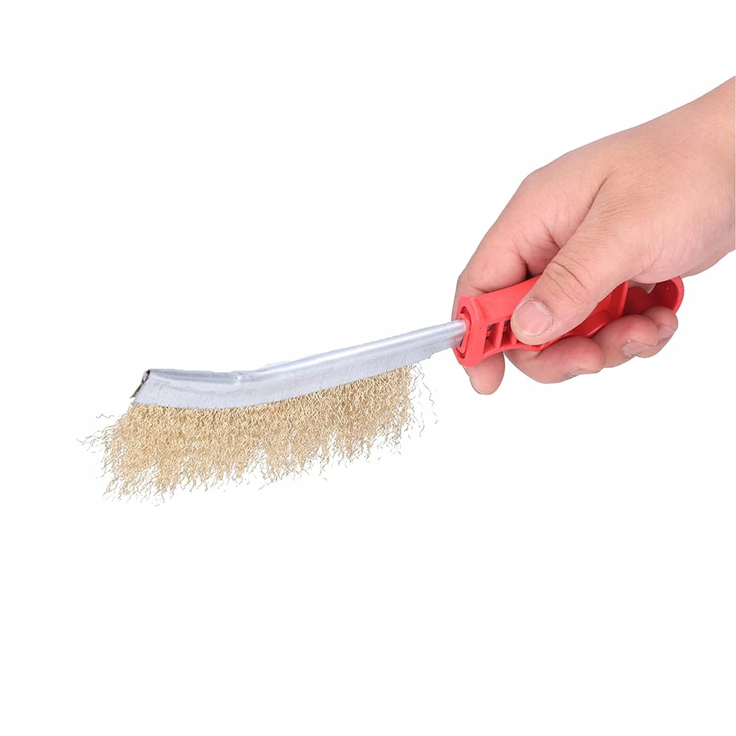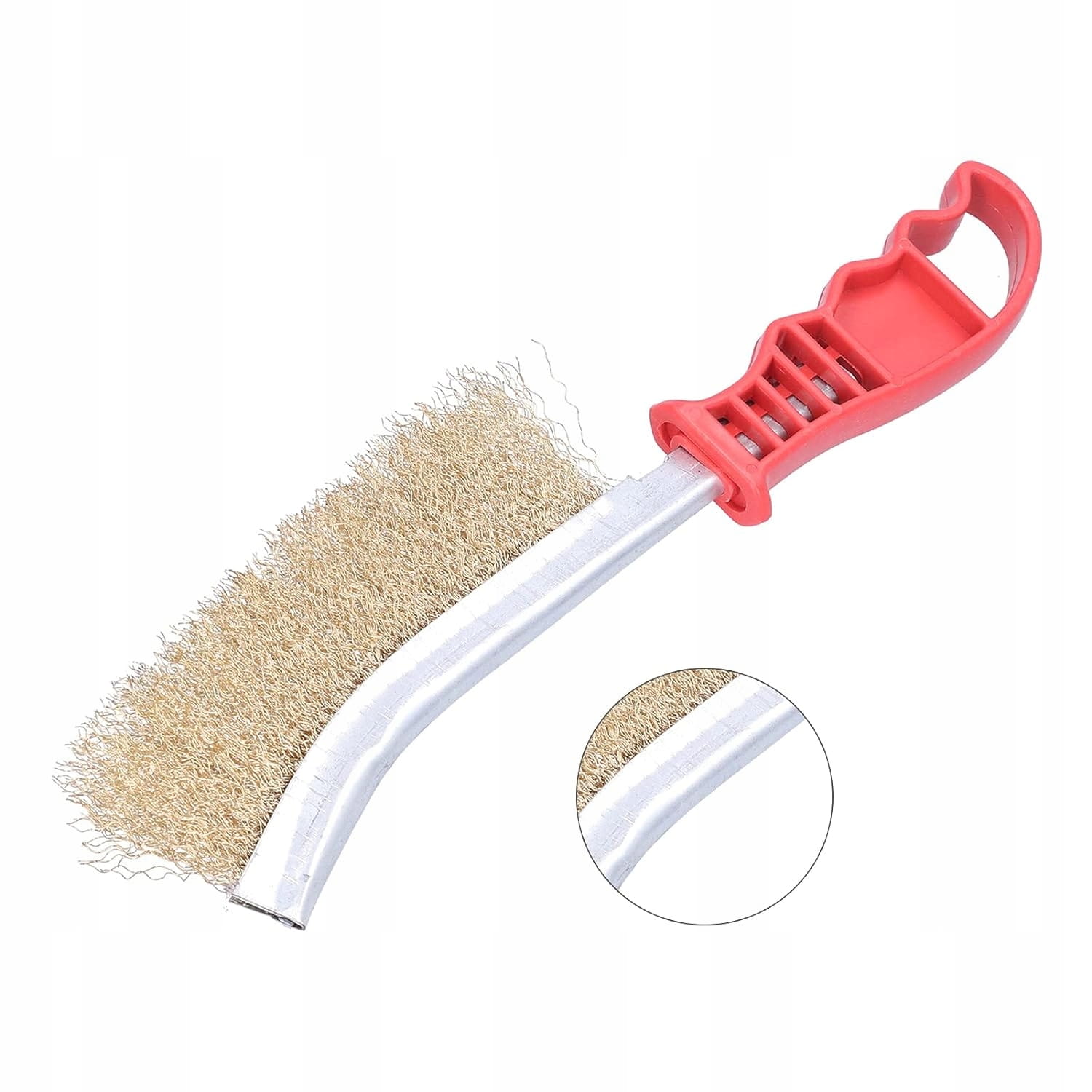 - Szczotka wykonana została z karbowanego, mosiężnego drutu oprawionego w metalowy uchwyt.