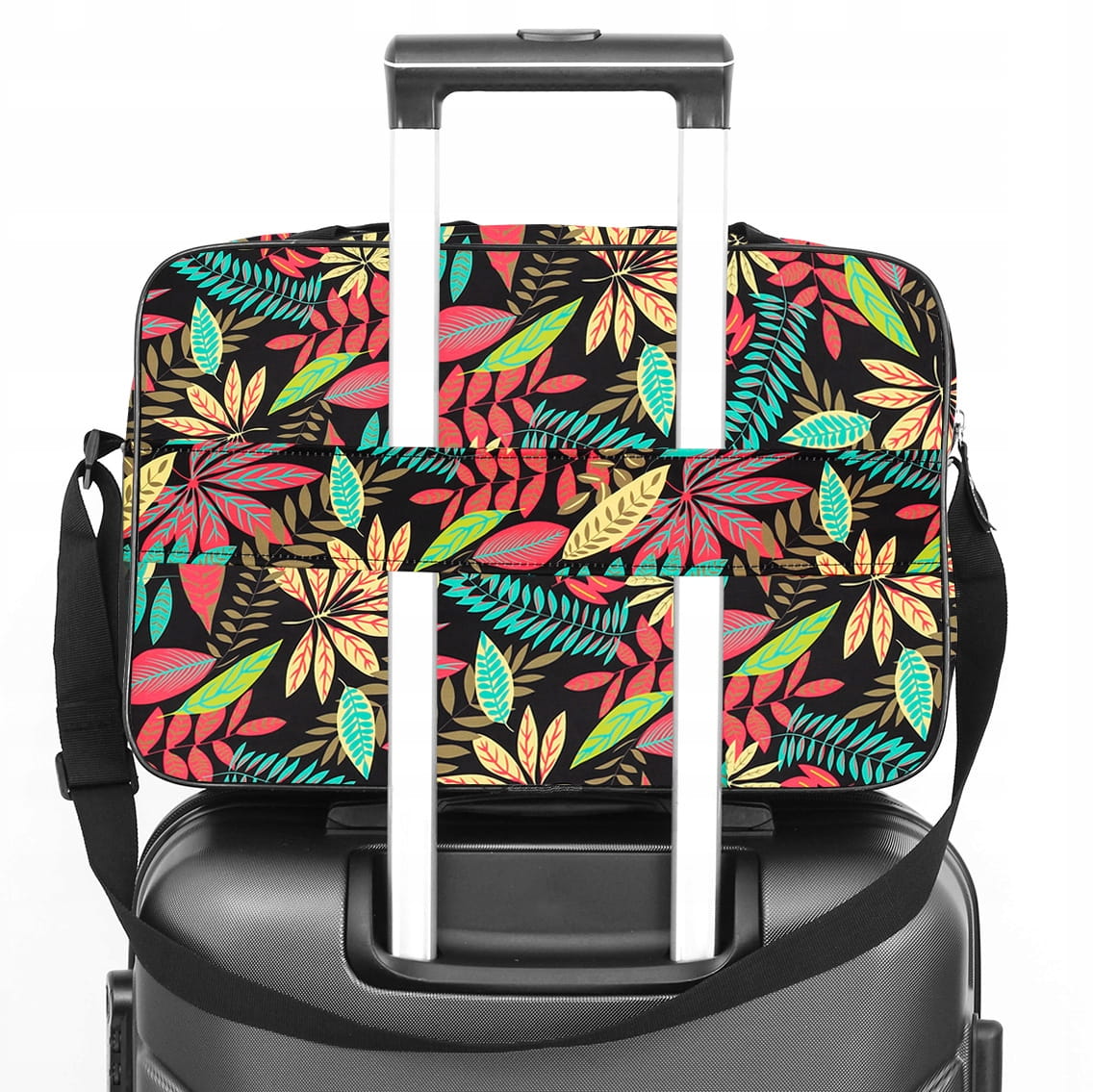 W tylnej części została wszyta obejma, którą można wykorzystać do montażu torby na walizce. Sprawi to, że w łatwy sposób można poruszać się zarówno z walizką jak i torbą