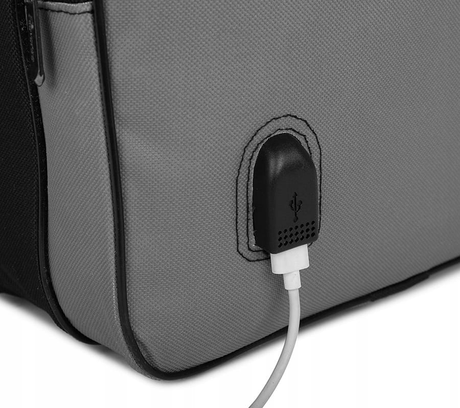 Torba jest wyposażona w kabel USB pod który można podłączyć np. power bank.