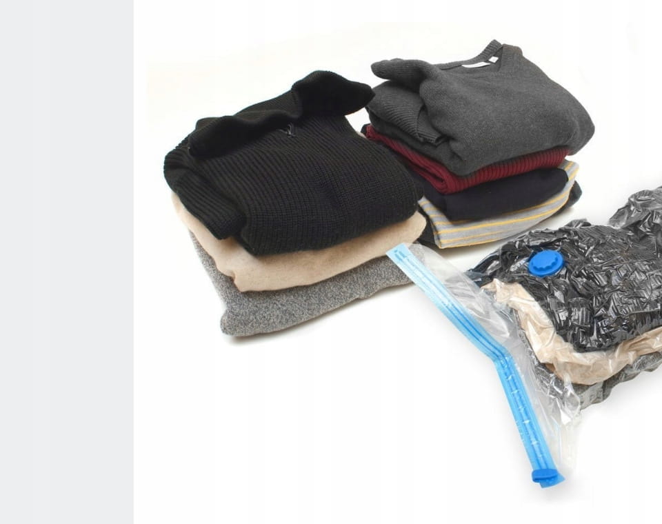 - Rzeczy włożone do worka próżniowego zajmują teraz znacznie mniej miejsca i są zabezpieczone przed szkodnikami (roztoczami , molami itp.) , pleśnią , wilgocią i niechcianymi zapachami.