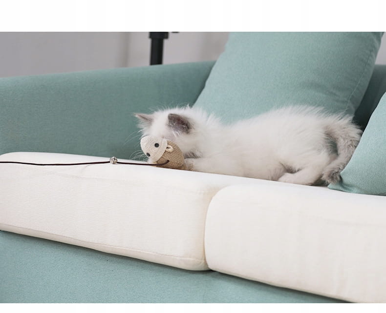 Zabawka posiada ogon wykonany z piórka, a także dzwoneczek, które jeszcze bardziej zachęca kota do polowania na mysz.